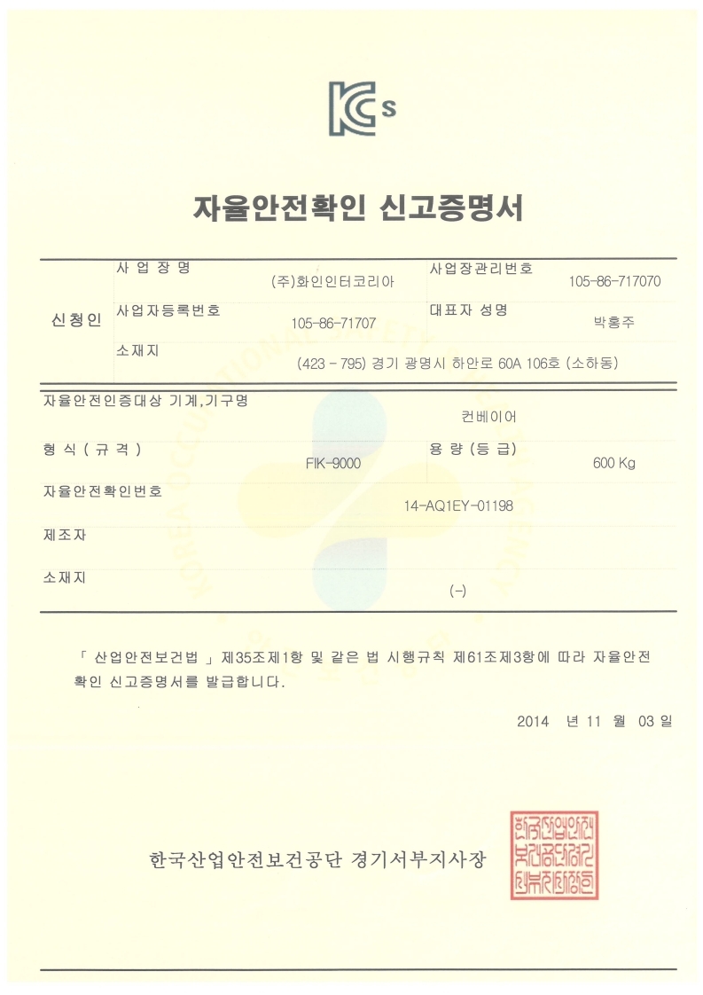 ÀÚÀ²¾ÈÀüÈ®ÀÎ ½Å°í Áõ¸í¼ FIK-9000
