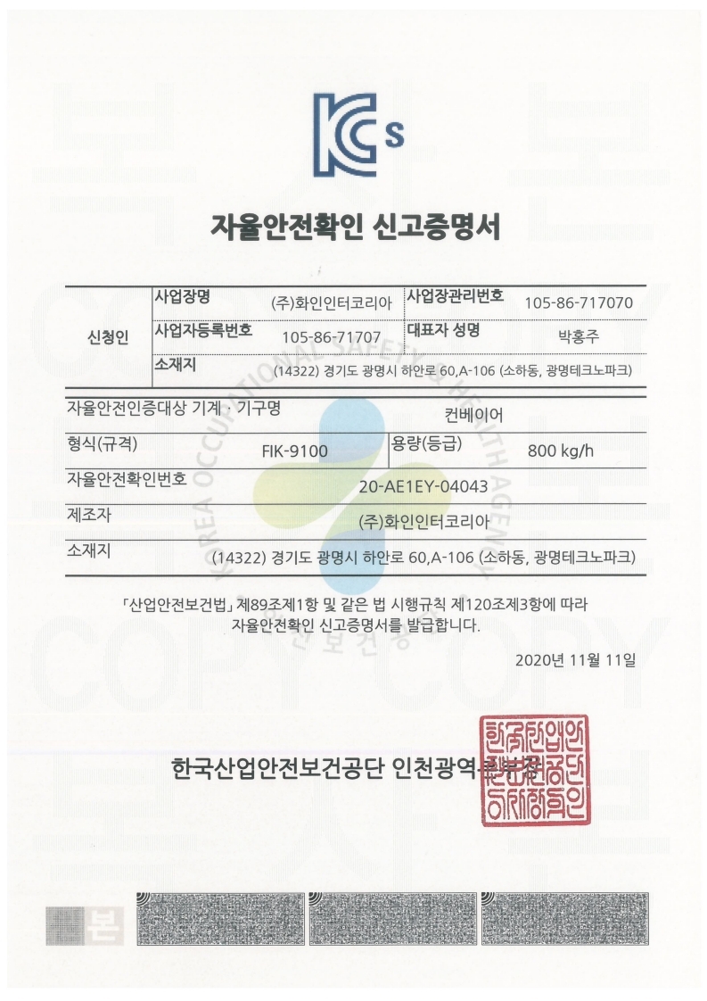 ÀÚÀ²¾ÈÀüÈ®ÀÎ ½Å°í Áõ¸í¼ FIK-9100