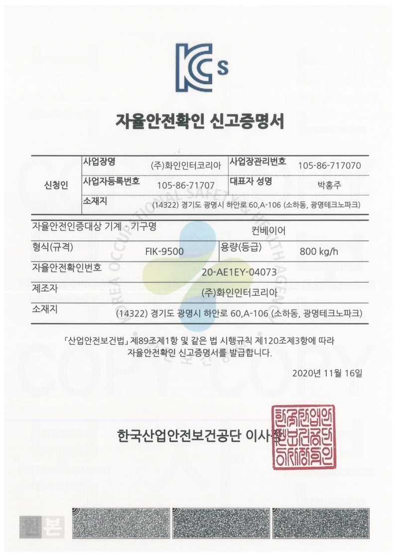 ÀÚÀ²¾ÈÀüÈ®ÀÎ ½Å°íÁõ¸í¼ FIK-9500